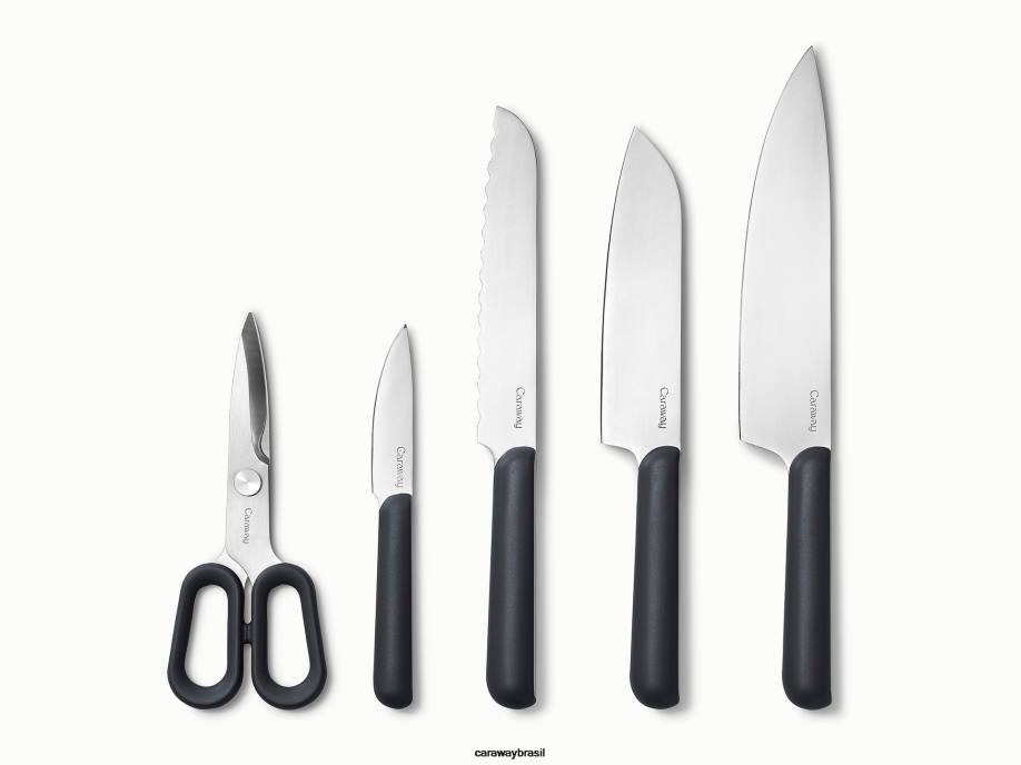 Corte melhor, prepare mais limpo e armazene com mais facilidade com nosso conjunto de preparação não tóxico. com 4 facas, 5 utensílios, tesouras e uma unidade de organização modular inédita, nosso conjunto de preparação é um conjunto simplificado de itens essenciais projetados para a cozinha moderna.