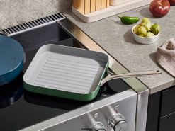 A cozinha limpa é preparada com a grelha quadrada – ideal para levar churrascos para dentro de casa e adicionar linhas de grelha a vegetais, carnes e paninis. com quase o dobro de espaço para cozinhar em comparação com a frigideira clássica do cominho, a assadeira quadrada apresenta nosso revestimento antiaderente exclusivo para facilitar o cozimento e a limpeza.