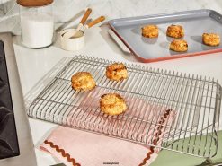 para todas as suas necessidades de panificação, nossa dupla de assadeira grande e rack de resfriamento foi projetada para tornar sua vida na cozinha muito mais fácil. a assadeira grande de 18 x 13 “apresenta uma superfície de cerâmica não tóxica e naturalmente lisa e é dimensionada perfeitamente para que o rack de resfriamento de aço inoxidável de 18 x 13” fique dentro.