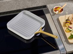 A cozinha limpa é preparada com a grelha quadrada – ideal para levar churrascos para dentro de casa e adicionar linhas de grelha a vegetais, carnes e paninis. com quase o dobro de espaço para cozinhar em comparação com a frigideira clássica do cominho, a assadeira quadrada apresenta nosso revestimento antiaderente exclusivo para facilitar o cozimento e a limpeza.